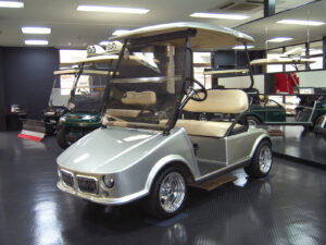 Custom Cart Custom Cart Custom Cart Club Car ONWARD2人乗り+パッセンジャーの4人乗り仕様となっています。ボディカラーをセレナイトグレー+マット塗装にしました。ClubCar純正オプションの12インチアルミホイール、その他にもオプションステアリング、オーバーヘッドストレージ、エンクロージャーが装着されています。シートもプレミアムシートのホワイト! 恐らく日本に1台のプレミアムカート仕様です。 Club Car PRECEDENTボディを御希望のダークブルーマイカメタリック(8P4)×ブラックの2TONEに塗装。更にはセンターラインをご要望頂きましたので、カッティングシートにてブラックベース×ホワイトラインを施工させて頂きました。その他にはLEDフルライトキット、サイドクーラーボックス、3スポークハンドル、シートカバー(ブルー×ホワイト)、USA製ジャバラ式レインカバー、W371(ゴールドポリッシュ)10インチアルミホイール+DURO社DI5007(205/50‐10)を装着頂きました。勿論、リチウムバッテリー搭載車です。 Club Car TEMPOフロントカウル/リアカウル/ルーフをブライトブルー(DAR)での御希望を頂き塗装させて頂きました。 その他にはLEDヘッドライトフルキット、LED付きウインカー、USA製ジャバラ式レインカバー、 サイドクーラーボックス、クラブ&ボールウォッシャー、PVC製シートカバー(ライトグレー)を装着頂き、 新車ではありますが、鉛製バッテリーからリチウムバッテリーに載せ替えをさせて頂きました。 エアコン・ヒーター付きカートヒーターはファンヒーターです。燃料は軽油です。フロントシートの下から前後の送風口があります。12Vの電力でファンと電磁ポンプを作動させます。本体もフロントシート下に入りますので邪魔になることはありません。 現在駆動用72Vバッテリーから24Vに変換してエアコンも稼働させています。現在はまだ平坦なコースでしかテストをしておりませんが十分に18H使用できます。 ドア付きカートエアコンやヒーターをつけても熱風、寒風が吹いていては完全なコンディションは確保できません。 そこで完全なコンディションで快適なゴルフや移動ができるようにドア付きのカートをご紹介します。雨風は完全にシャットアウトエアコン、ヒーターの効力を十分に生かすことができます。 2人乗り、5人乗りがあります。 ClubCar ONWARD2人乗り+パッセンジャーの4人乗り仕様となっています。ブラッシュガード、フェンダーフレア、エンクロージャー、ストレージボックス等、メーカーオプション品を多数選択頂きました。フェンダーフレアを装着した事でフロント、リア共にタイヤが引っ込んでしまいましたので、フロント/リアにワイドトレッドスペーサーを輸入し装着して頂きました。 Marshell DG-M2シャンパンゴールドボディ、シャンパンゴールドルーフ仕様です。シートはアイボリーを選択頂きました。LEDヘッドランプ(デイライト機能付)、テールランプ、オプションの4バッグアタッチメント、サイドミラー、サイドクーラーボックスを装着、W1740(シルバーポリッシュ)10インチアルミホイール+DURO DI5007(205/50‐10)も装着頂きました。 Marshell DG-M2レッドボディ、レッドルーフ仕様です。ブラックのシートを選択頂いています。LEDヘッドランプ(デイライト機能付)、テールランプ、標準装備の8インチスチールホイールにホイールキャップを装着、オプションのサイドミラー、レインカバー、サイドクーラーボックスを装着して頂いています。 Marshell Beverage Cart特注ビバレッジカートになります。 仕様などをお打合せの上、製作致します。 Marshell DG-C2シャンパンゴールドボディ、アイボリールーフ、アイボリーのシートとなっています。LEDヘッドライト、テールランプ、ドリンクホルダー等の標準装備、オプションのレインカバー、サイドクーラーボックスを装着。W371(ブラックポリッシュ)10インチアルミホイール+DURO DI5007(205/50‐10)を装着して頂きました。 Marshell DG-C2ブラックボディ、アイボリールーフ、ブラックのシートとなっています。LEDヘッドライト、テールランプ、ドリンクホルダー等の標準装備、標準装備の8インチスチールホイールにホイールキャップを装着、オプションの4バッグ搭載キット、サイドクーラーボックスを装着して頂きました。 YAMAHA G30ボディ、ルーフをブルー全塗装にゴールドのラインテープを貼付しています。シートカバーをブルーベースにホワイトラインにて特注製作しました。ステアリングをセンターパッドをワンオフにてホワイトの革貼り+塗装しています。アルミホイールはW1007(12インチ)の特注品スパッタリング塗装+DURO DI5011(190/50‐12)を装着です。 YAMAHA G30ボディ、ルーフをレッド全塗装にゴールドのラインテープを貼付しています。シートカバーをレッドベースにタンベージュラインにて特注製作しました。ステアリングをセンターパッドをワンオフにてタンベージュの革貼り+塗装しています。アルミホイールはW1007(12インチ)の特注品スパッタリング塗装+DURO DI5011(190/50‐12)を装着です。 Y